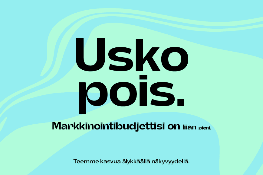 Suurin osa suomalaisista yrityksistä panostaa liian vähän markkinoinnin määrään ja laatuun. Kun haluat toimia toisin, ota yhteyttä meihin. Tehdään brändinne näkyväksi ja satsataan kasvuun.